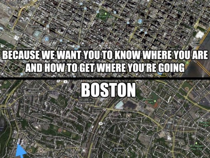Hello everyone, Welcome to MyLyftJournal. MyLyftJournal is a blog created with the intention to become an open forum for discussion to make rideshare more safe and understood by all users. My intention for the site is to build a better understanding between rideshare passenger and rideshare driver, have safer pickups, safer drop-offs, and everything in between. I am currently a driver for LYFT. I drive about 30 hours a week in the Boston Metro Area. The Boston Metro Area can be quite a challenging city/area to drive in. It is stressful due to certain traffic codes and it’s colonial-age street and city design. I mean come on anyone whose anyone has seen this meme: