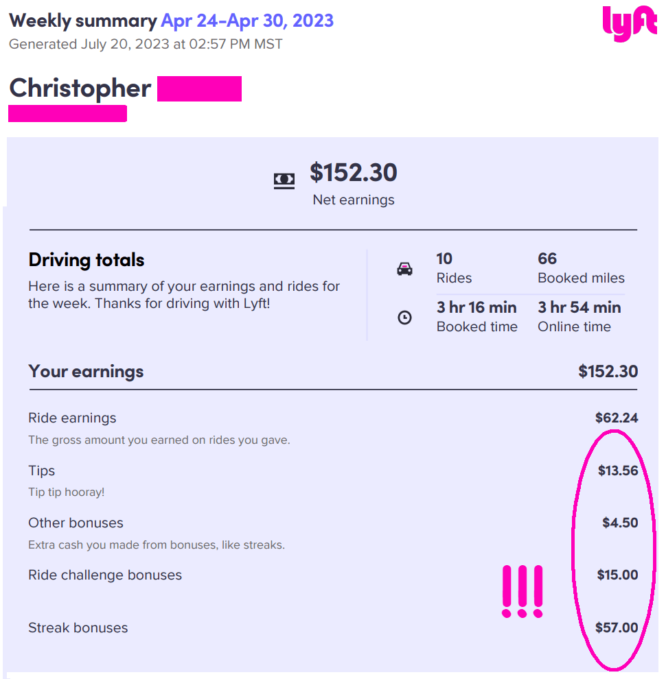 The other thing I like to do with this… is try to make the hundred in as little time as possible. Drive to bonus zones, do airport rides, or catch streaks, hit the rider challenge quota, do whatever you can to get to the $100 in as little time as possible. Here is a recent example of the “$100 a Day Mantra:”
