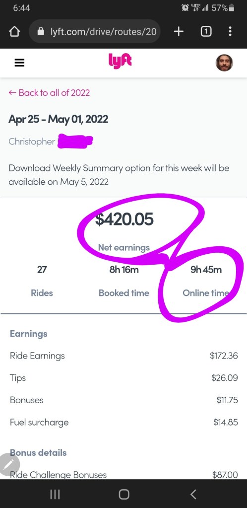 - There are two ways to really drive for Lyft. The first way is to go out and just drive on your own time. A couple rides here and there — you are driving on your own time which is nice but you won’t make as much. The second way, (more lucrative of course) is to read the Weekly Earnings Summary and Weekly Bonus Schedule every Sunday night and plan out your personal weekly driving schedule ahead of the week on either Monday morning or Sunday evening. If you always “Do the Bonuses” and “Hit the Streaks” I guarantee you will make more money while driving for Lyft. The Lyft Driver App (since 2020) frequently offers a 3 for at least $9 bonus during the week nowadays. Actually it’s often a 3 ride Streak for $18 – a superb rate! If you begin every shift with a 3-ride streak like this you will see your earnings go higher on a weekly basis.