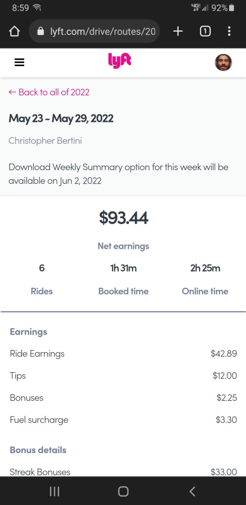 Once you Open the Lyft Dashboard on your phone, you’re going to navigate to last week’s driving week, and your going to do two screenshots of that week (on the same page).