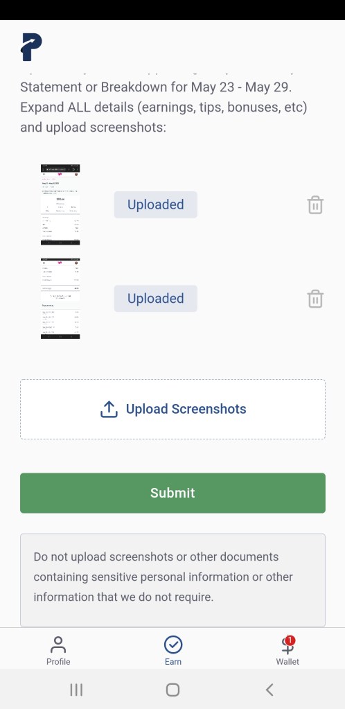 What you do is, you upload a couple screenshots to to make what is now an extra $7.00 every week that you drive for Lyft! (Yet another reason to drive for Lyft and not Uber!)